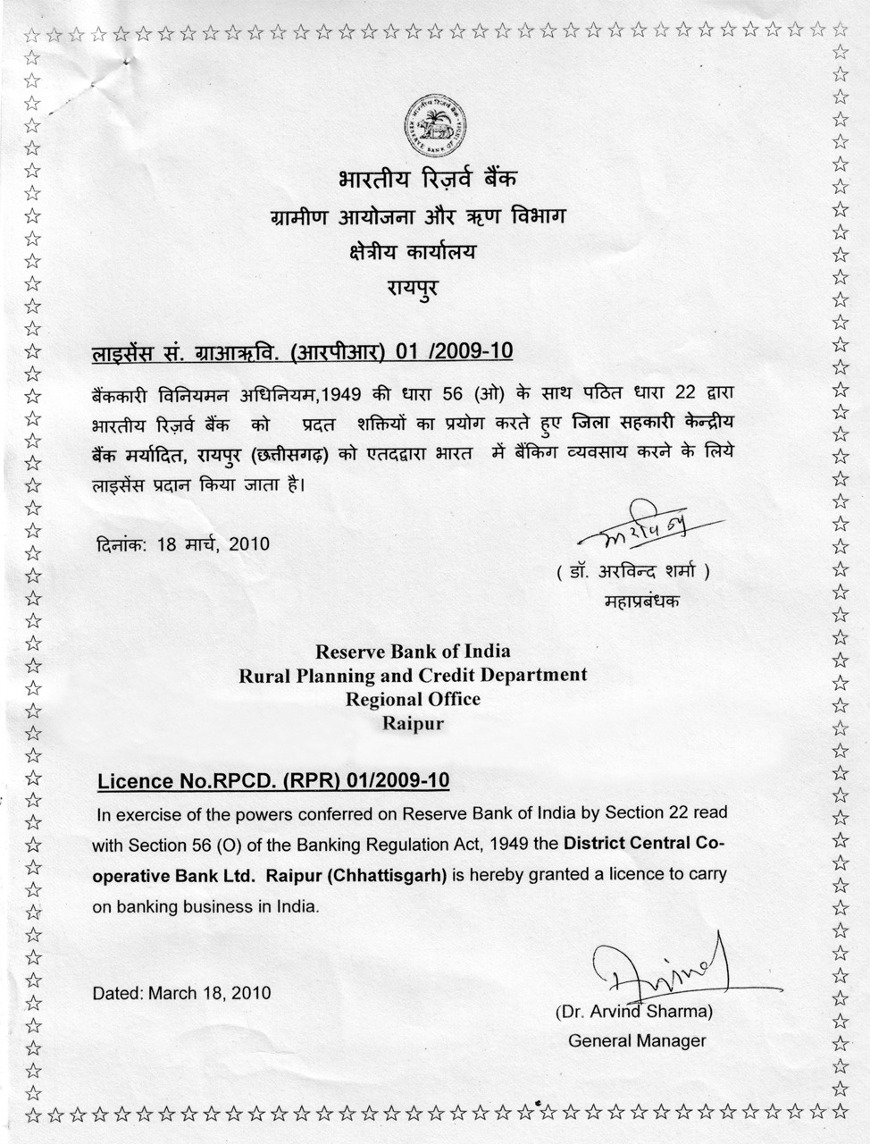 पूर्व में इस बैंक का नाम दि “रायपुर को-आपरेटिव सेंट्रल बैंक लिमिटेड” था, जिसे अब “जिला सहकारी केंद्रीय बैक मर्यादित, रायपुर छत्तीसगढ़” के नाम से जाना जाता है।
